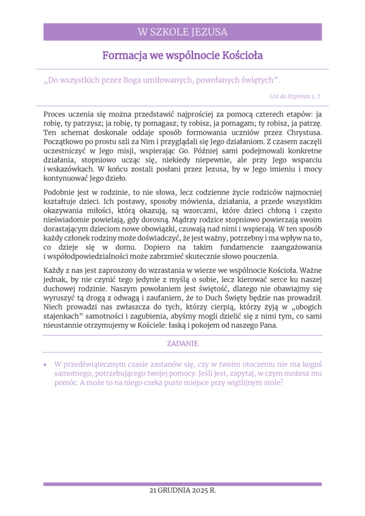 Uczniowie – misjonarze, 21 grudnia 2025
